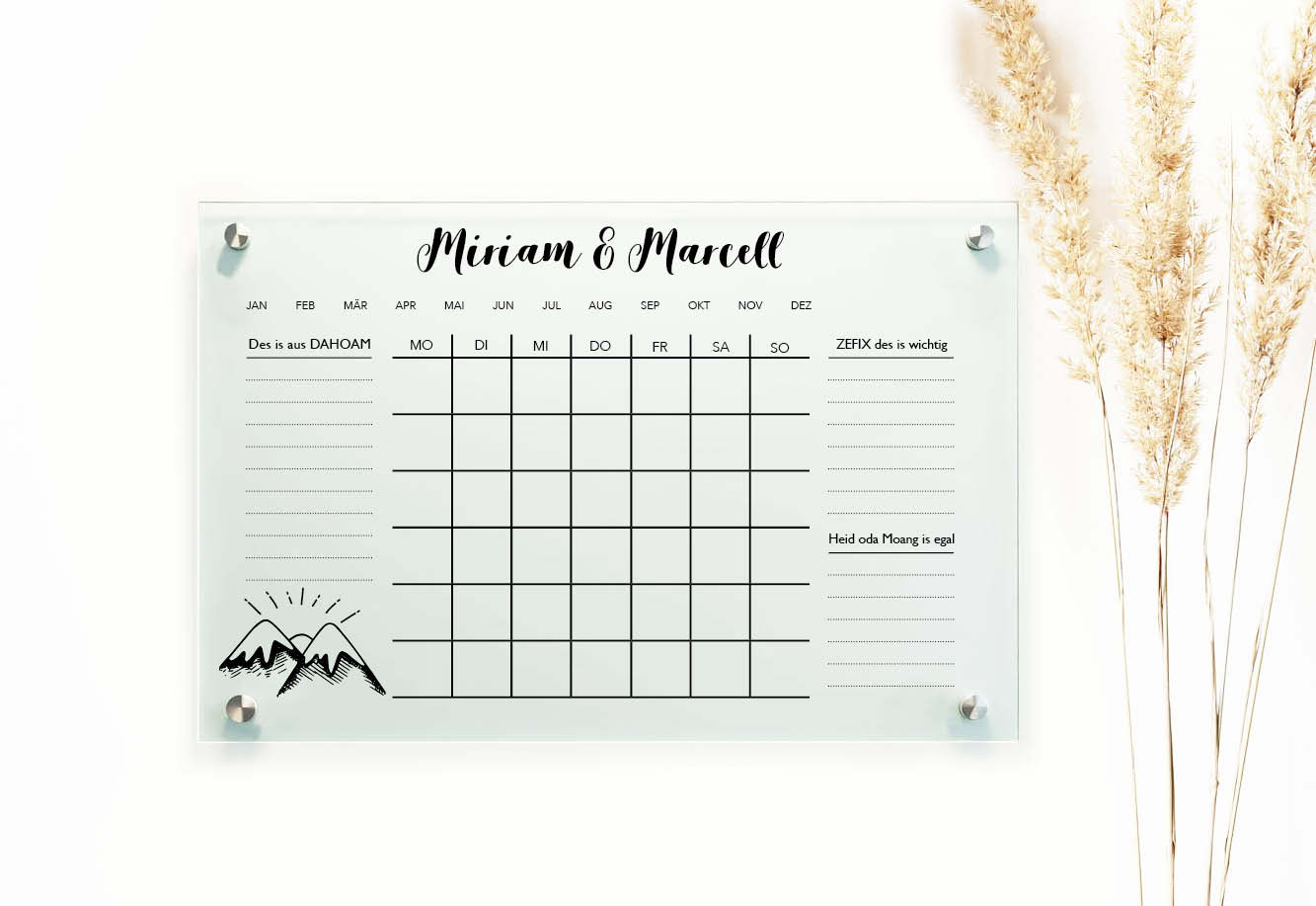 Acryl Planer | Monatsplaner | Familienplaner | Berge | Personalisiert