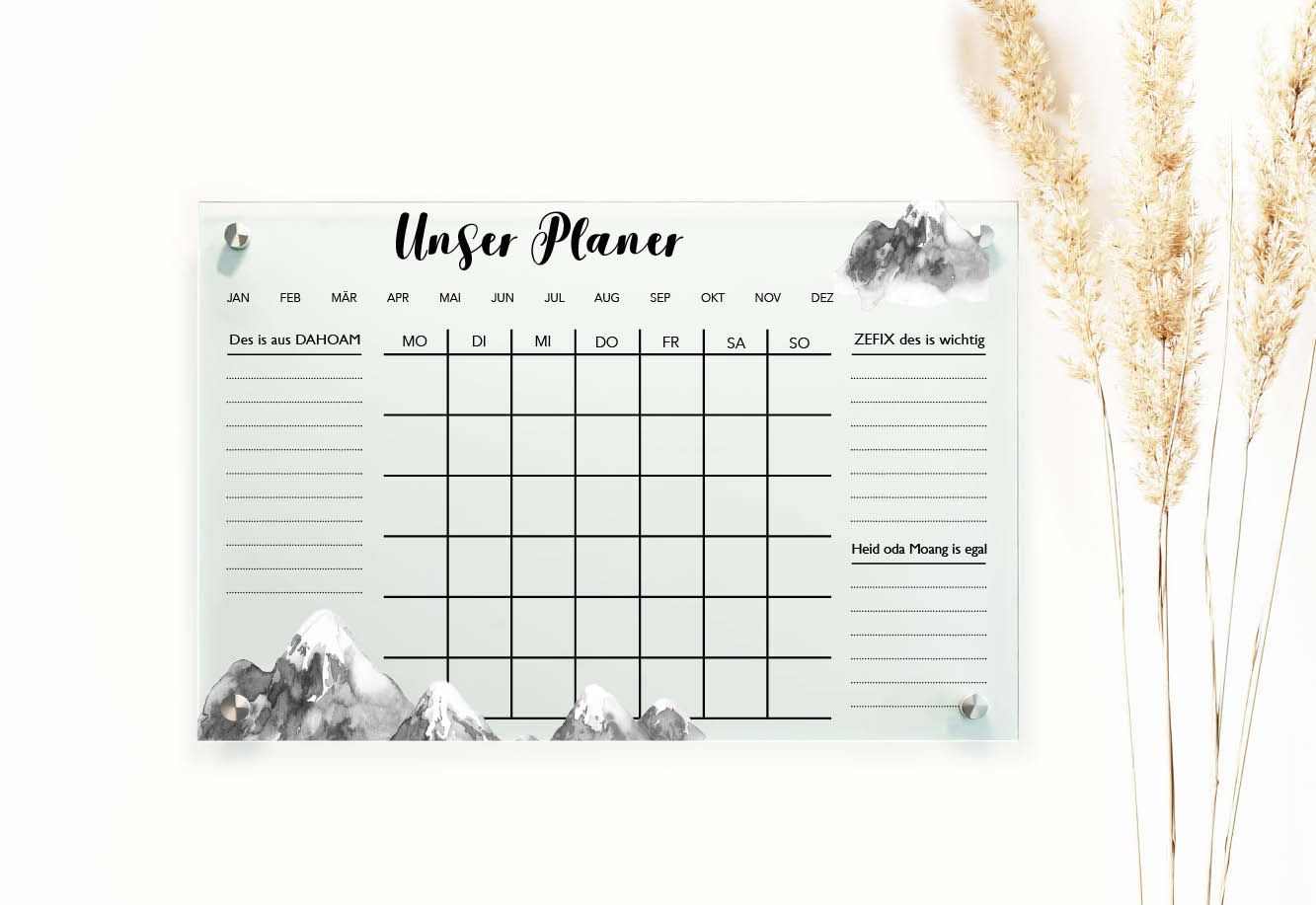 Acryl Planer | Monatsplaner | Familienplaner | Berge Winter | Personalisiert
