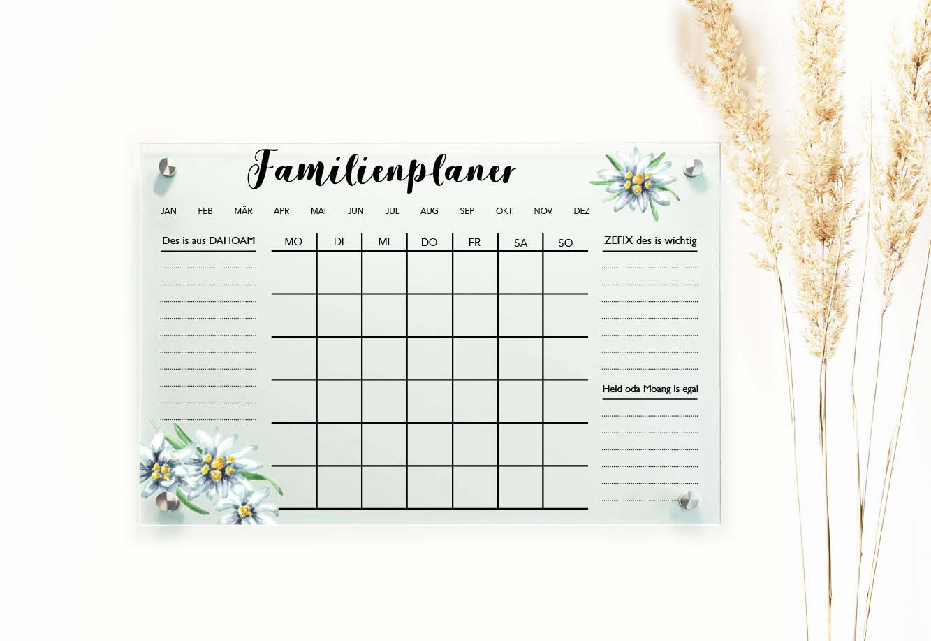 Acryl Planer | Monatsplaner | Familienplaner | Edelweiss | Personalisiert