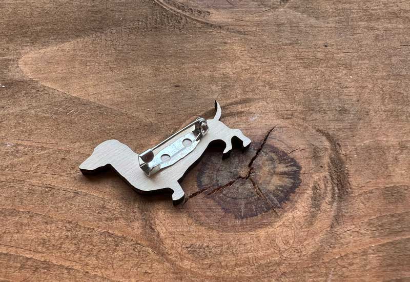 Der Holz-Anstecker ist ein schöner Hingucker für Dackelfans und Hundeliebhaber. Ob am Cap, Deiner Jeansjacke, anderer Kleidung oder Rucksack, oder wo immer Du willst.