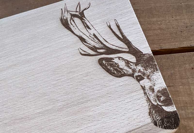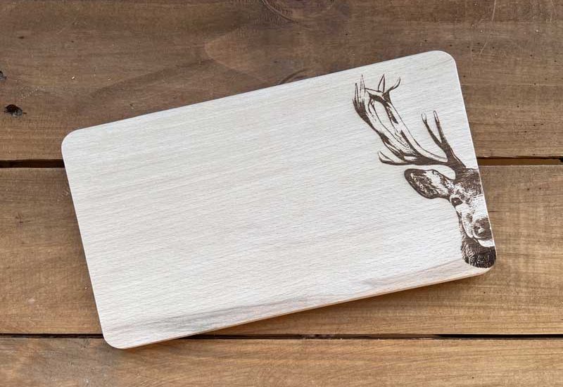 - Holz Schneidebrett aus massiver Buche mit Lasergravur