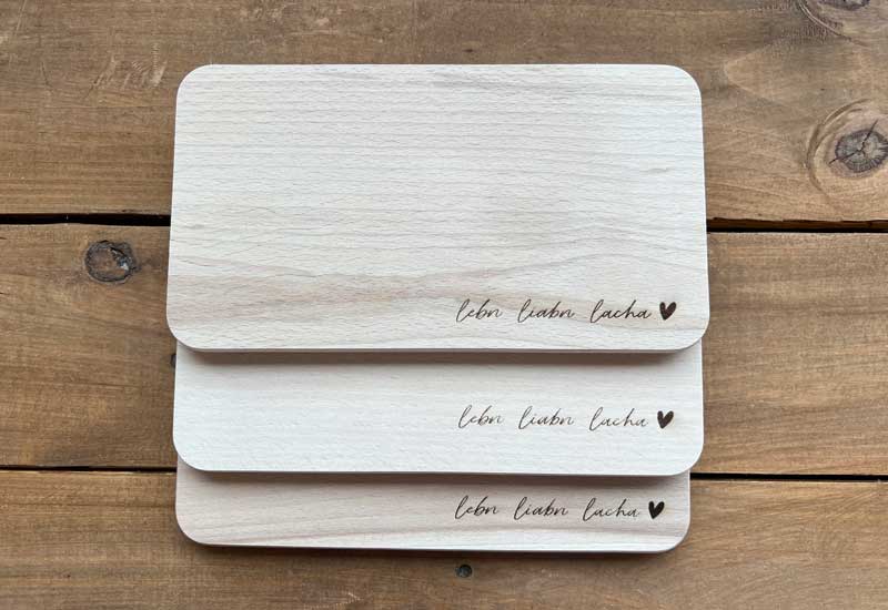 - Kleines Holz Schneidebrett aus massiver Buche mit Lasergravur