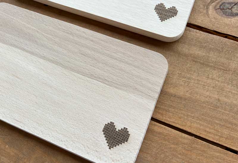 - Kleines Holz Schneidebrett aus massiver Buche mit Lasergravur