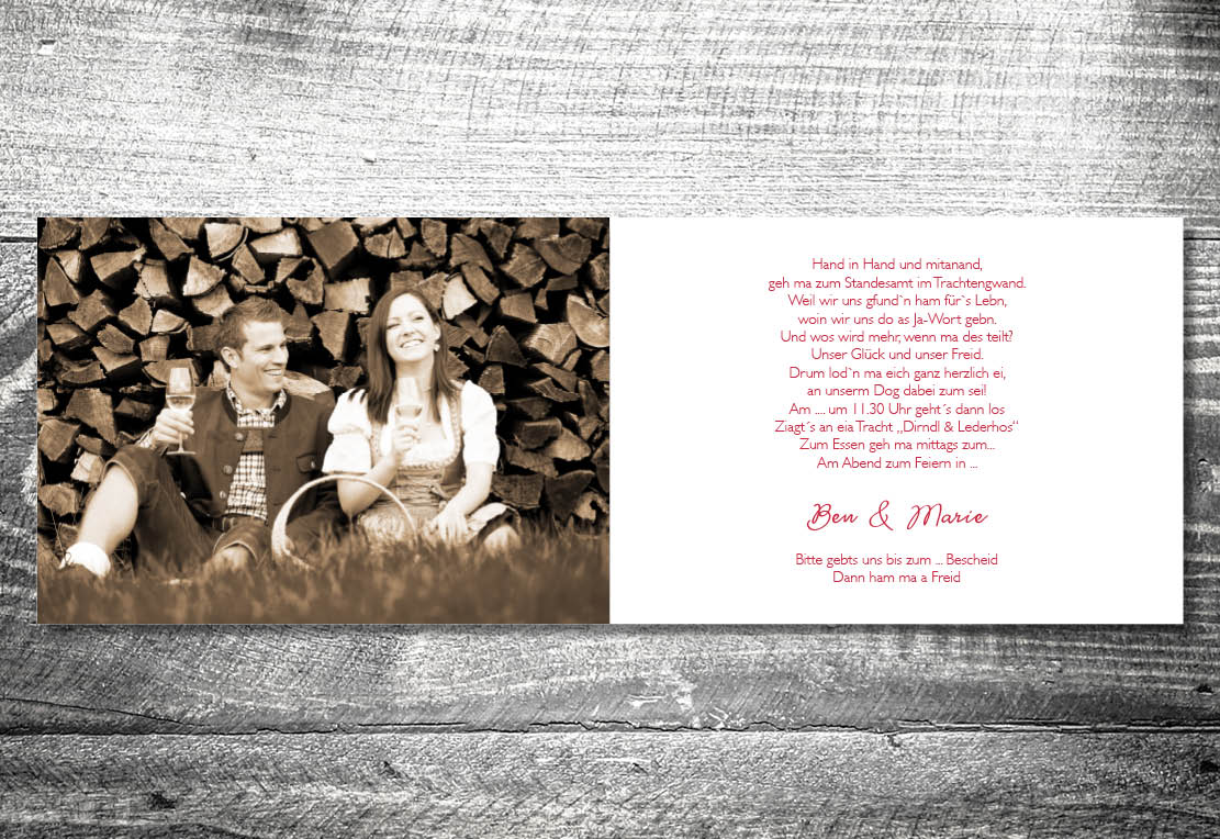 Kategorien: Bayrische Hochzeitseinladung, Einladungskarten Hochzeit, Hochzeit-Set Karoherzchen, Karten 4-seitig