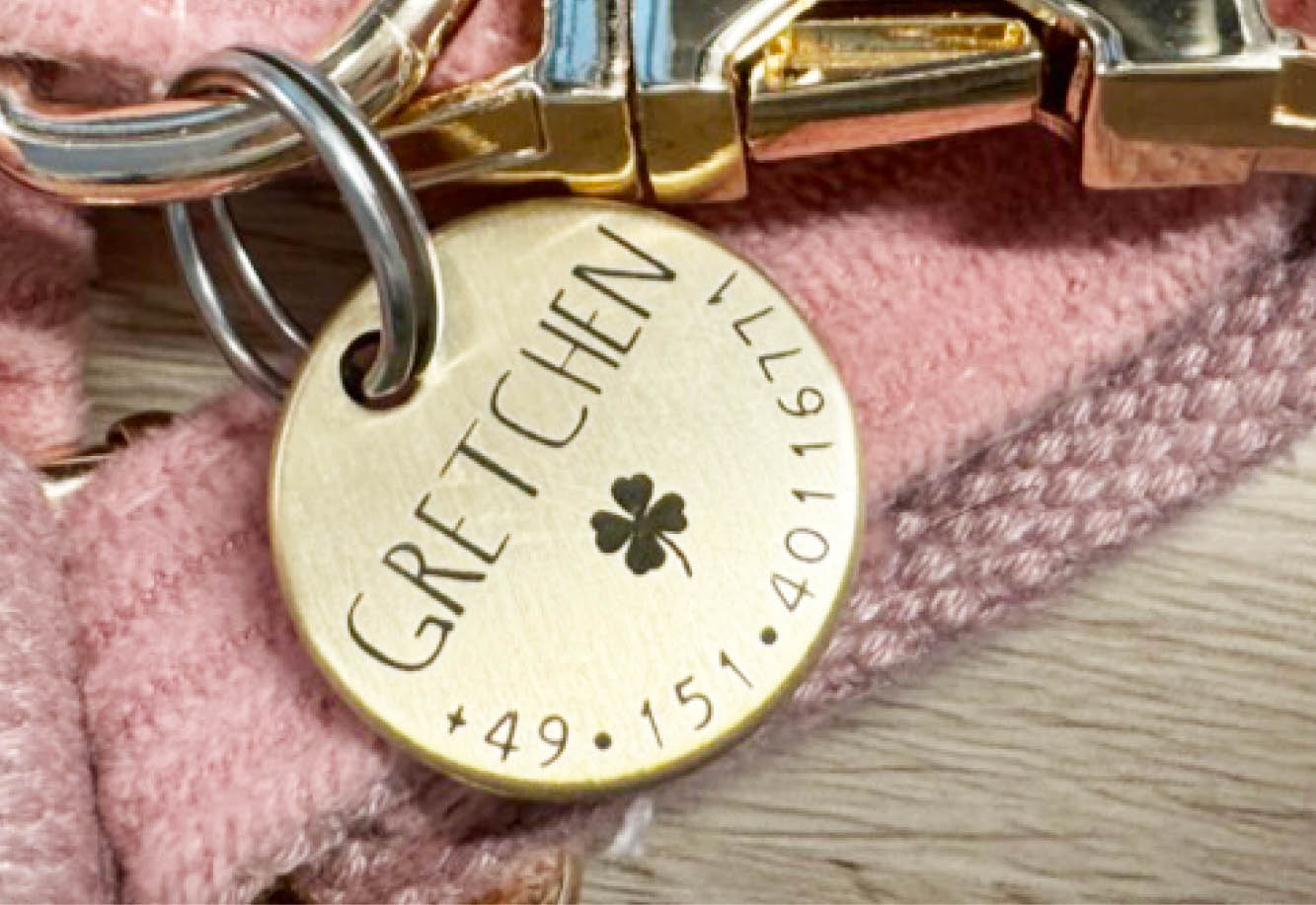 • Personalisierte Hundemarke aus Edelstahl Messing