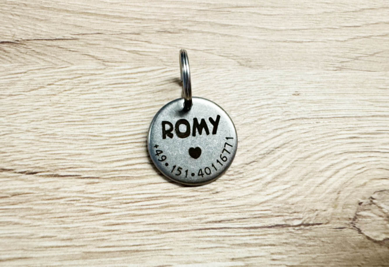 - Personalisierte Hundemarke aus Edelstahl Silber matt