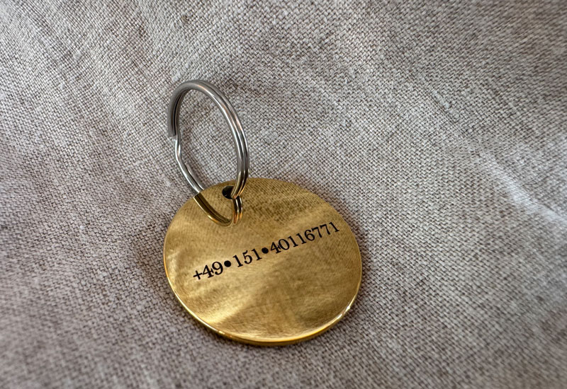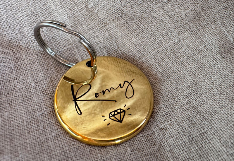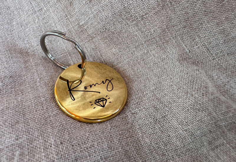 Hundemarke mit Gravur Schreibschrift Gold glänzend