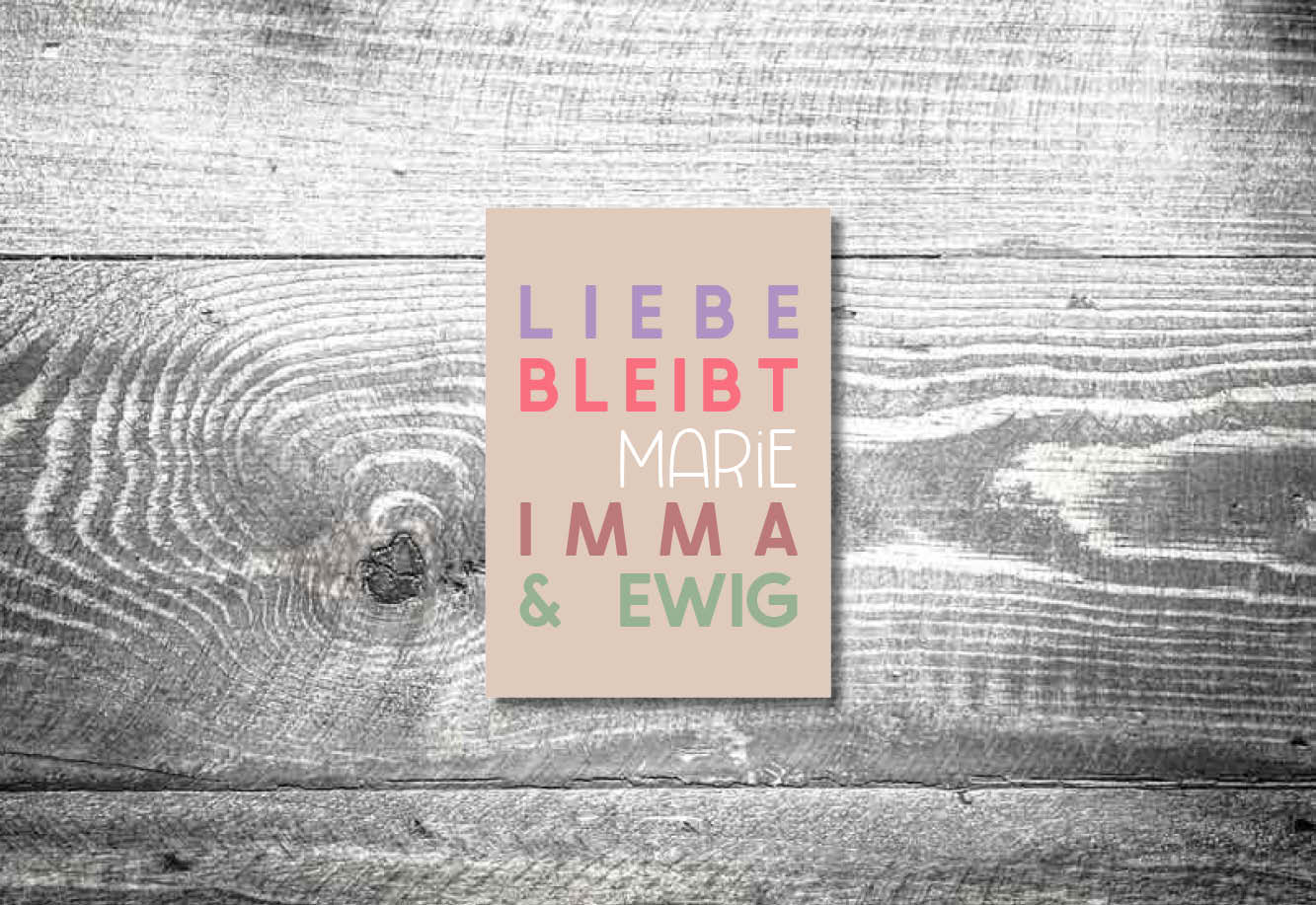 Hast Du besondere Wünsche bezüglich des Designs? Möchtest Du eine andere Farbe (Farbauswahl) oder Schrift (Schriftenauswahl)? Wir helfen Dir Dein individuelles Design zu erstellen.