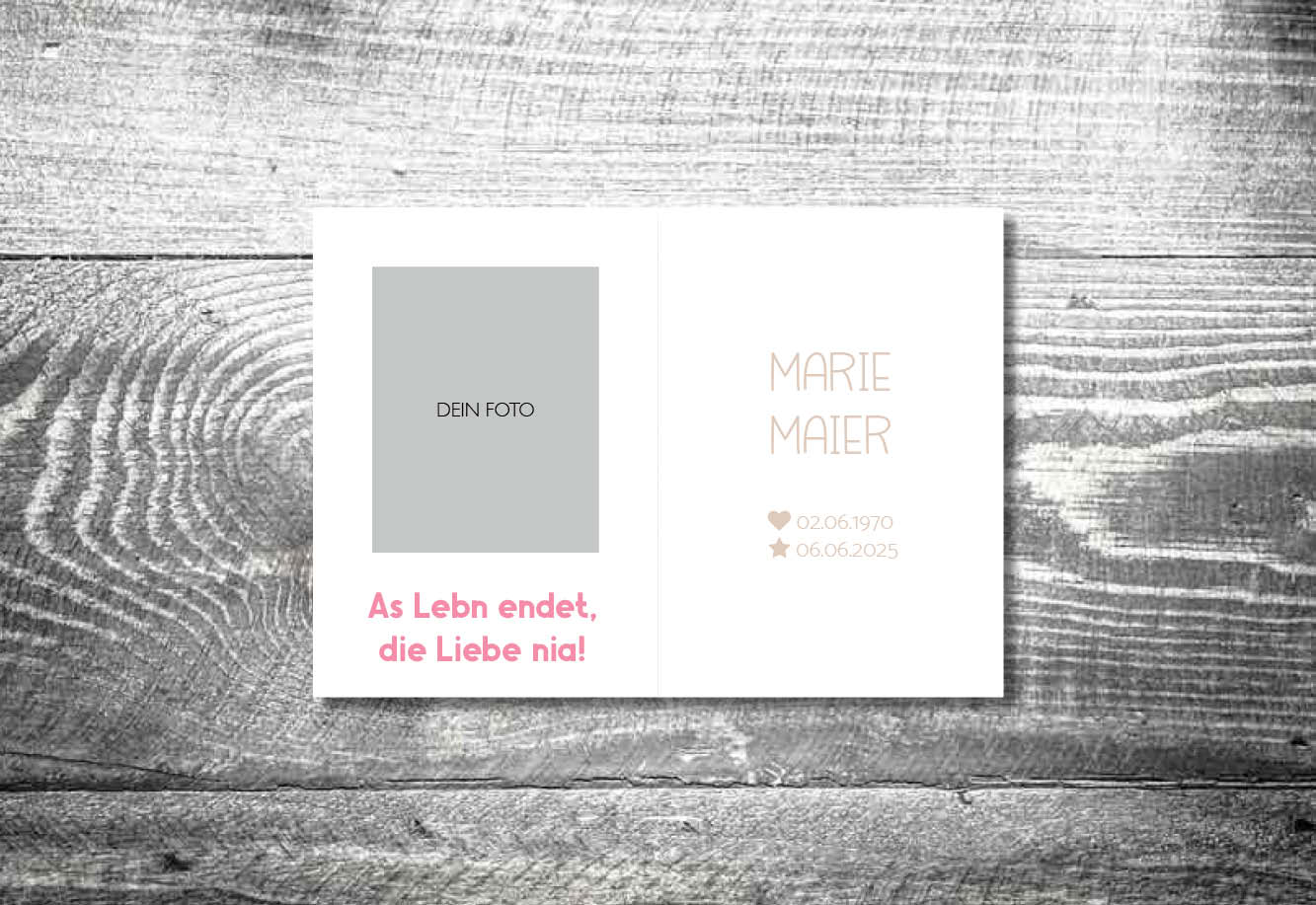 Hier kannst Du Deinen persönlichen Text eingeben. Benötigst Du Hilfe oder Tipps für den Text? In unserem Magazin kannst Du Dich inspirieren lassen.