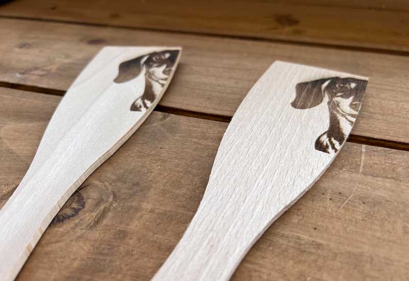 - Holz-Pfannenwender aus Buche mit Lasergravur