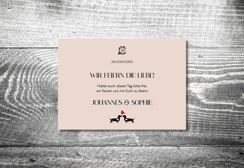 Kategorien: Hochzeit-Set Dackelliebe, Karten 2-seitig, Save the Date