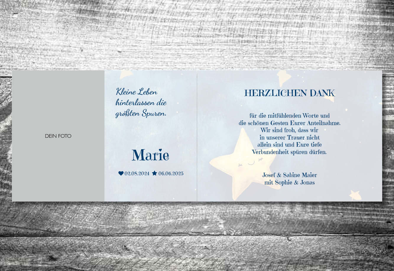 Sternenplatzerl | Trauer Dankeskarte | 4-Seitig